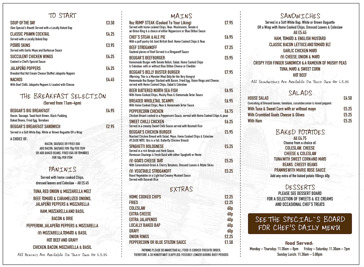 If you're in the area and craving a great meal in a welcoming pub setting, the Beggar's Bridge - Pub & Kitchen Menu offers a fantastic dining experience. Whether you're stopping by for a quick bite or a leisurely evening, this pub will leave you satisfied and eager to return.